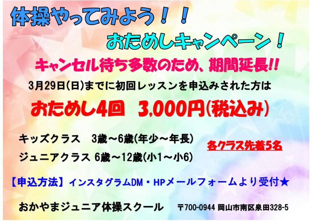 NEW★体操やってみよう!!おためしキャンペーン好評につき延長★